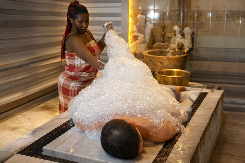 Emirtimes Hotel Tuzla’da sunulan Kese Köpük Masajı ile cildinizi derinlemesine arındırırken, bedensel rahatlamanın keyfini çıkarın. Geleneksel kese ile ölü derilerden arınan vücudunuz, ardından yoğun köpükle masaj yapılarak yumuşak ve pürüzsüz bir hale gelir. Bu 45 dakikalık özel seans, kendinizi yenilenmiş hissetmenizi sağlayacak!