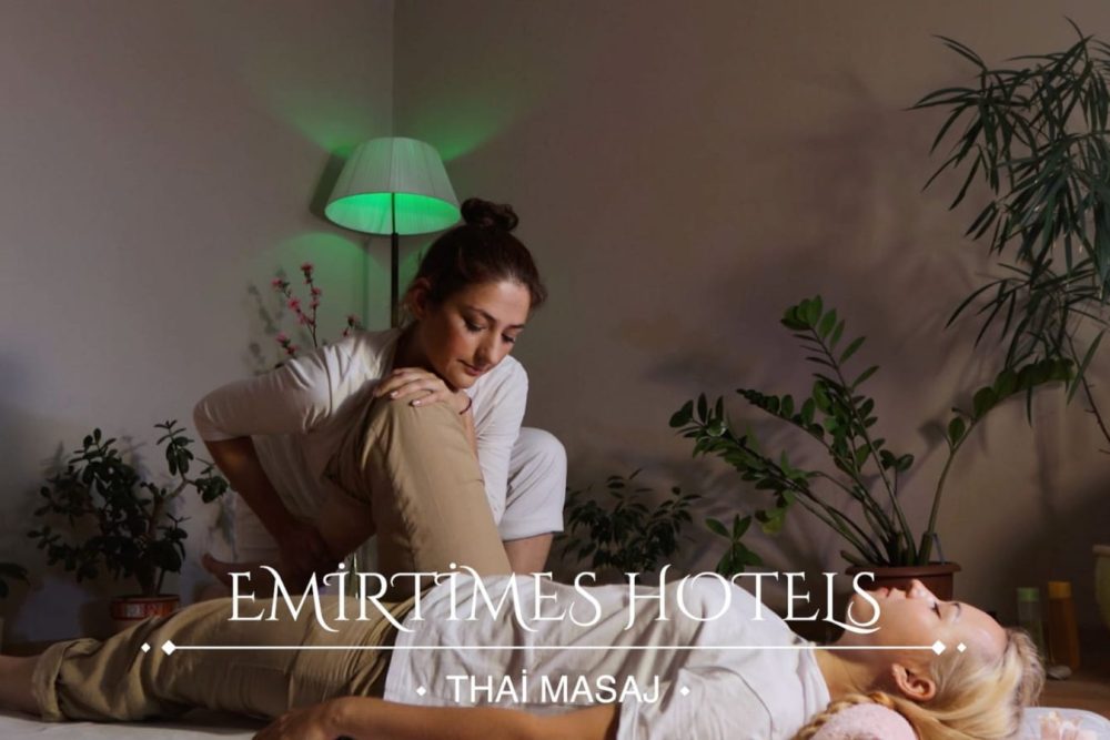 Emirtimes Hotel Tuzla’da rahatlatıcı bir Thai masajı ile bedeninizi ve zihninizi yenileyin. Geleneksel Thai masajı teknikleriyle kas gerginliklerini azaltan, enerji akışını dengeleyen bu eşsiz deneyim, 45 dakikalık bir seansla sizlere sunuluyor. Hem dinlendirici hem de canlandırıcı bu masaj, stres ve yorgunluktan uzaklaşmak için mükemmel bir seçenek!
